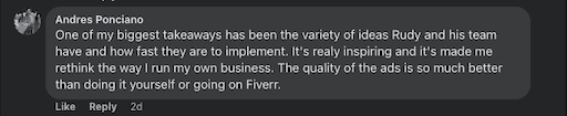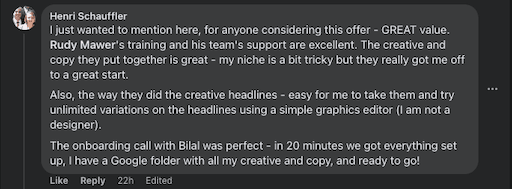 This program and must be used within 30 days of purchase. Ad Spend not included. We do not guarantee roi or results. Ad creation does not include edits. Support once ads are delivered is handled via the 3x weekly coaching calls.